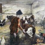 Al piano terra della sua casa c’è la stalla, dove abitano la mucca Fontana e il suo vitellino, le galline livornesi e il gallo rosso e nero. Anna, mille volte al giorno, scende i ripidi scalini di pietra per dar loro da mangiare; dopodiché pulisce la stalla e porta via il letame, storta sulle gambe magre, con una carriola arrugginita. Poi sale poco più su, nel prato sotto il pino cembro, ad accompagnare le galline nel pollaio dove trascorrono la giornata. È così bello vedere questa donnina con il berretto giallo condurre le galline che la seguono fedelmente, conversando con loro, come il pifferaio magico. La sera, per proteggerle dalla volpe, le riaccompagna nella stalla e, quando alle galline tocca di restar dentro, si affacciano alla finestra.